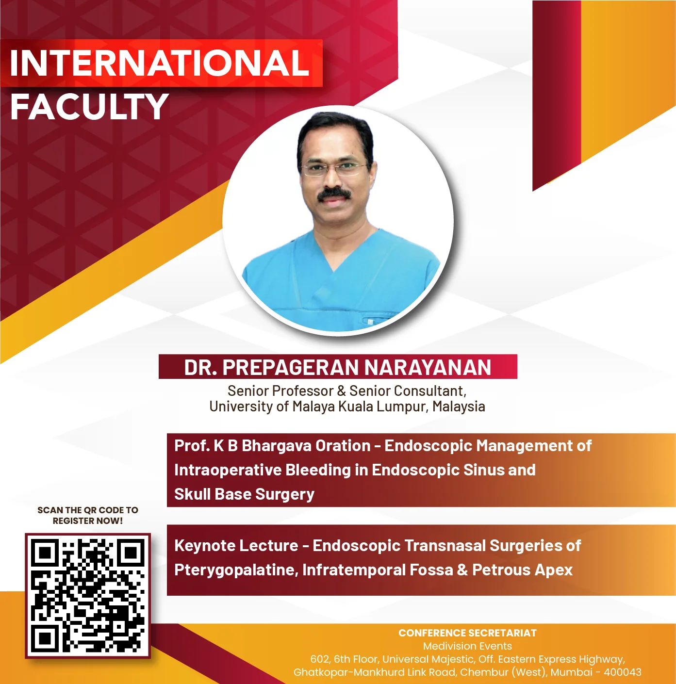 Mega SINOCON 2026 is honoured to welcome Dr. Prepageran Narayanan as International Faculty, delivering the prestigious Prof. K B Bhargava Oration.